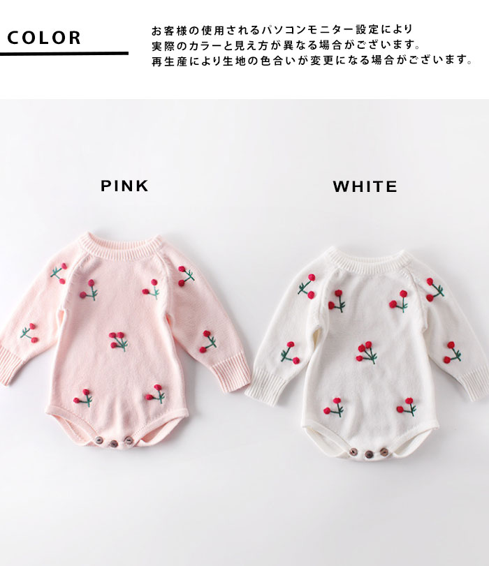 ●ITEM:ベビー服 ロンパース さくらんぼ 秋 冬 ニット 赤ちゃん ベビー 女の子 男の子 キッズ 子供服 子ども服 こども服 ネコポス送料無料 ●COL:PINK/WHITE ※お客様の使用されるパソコンモニター設定により実際のカラーと見え方が異なる場合がございます。