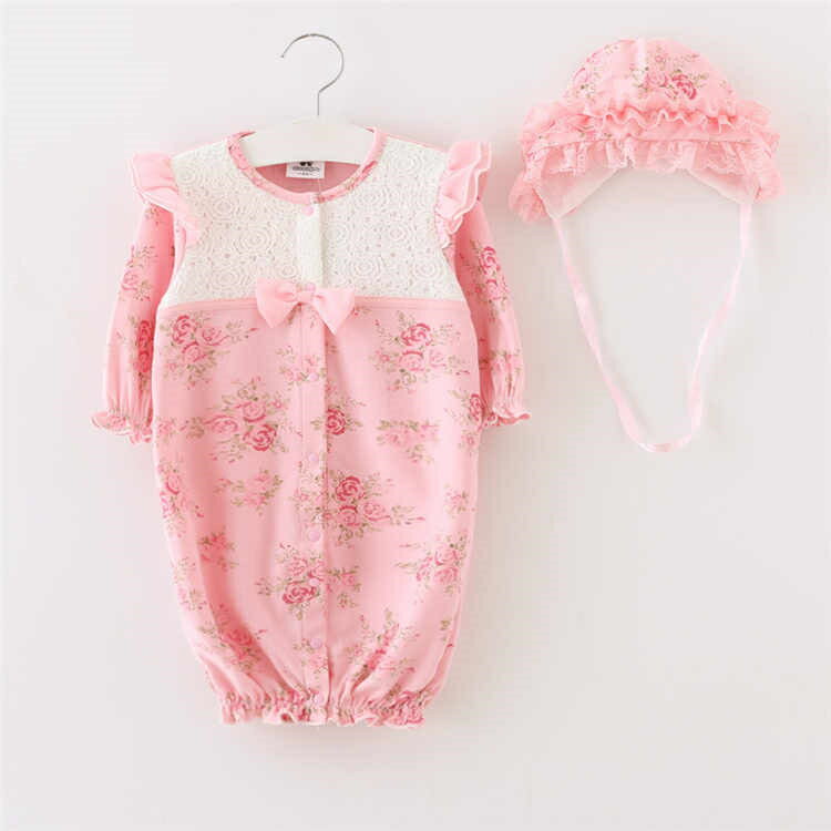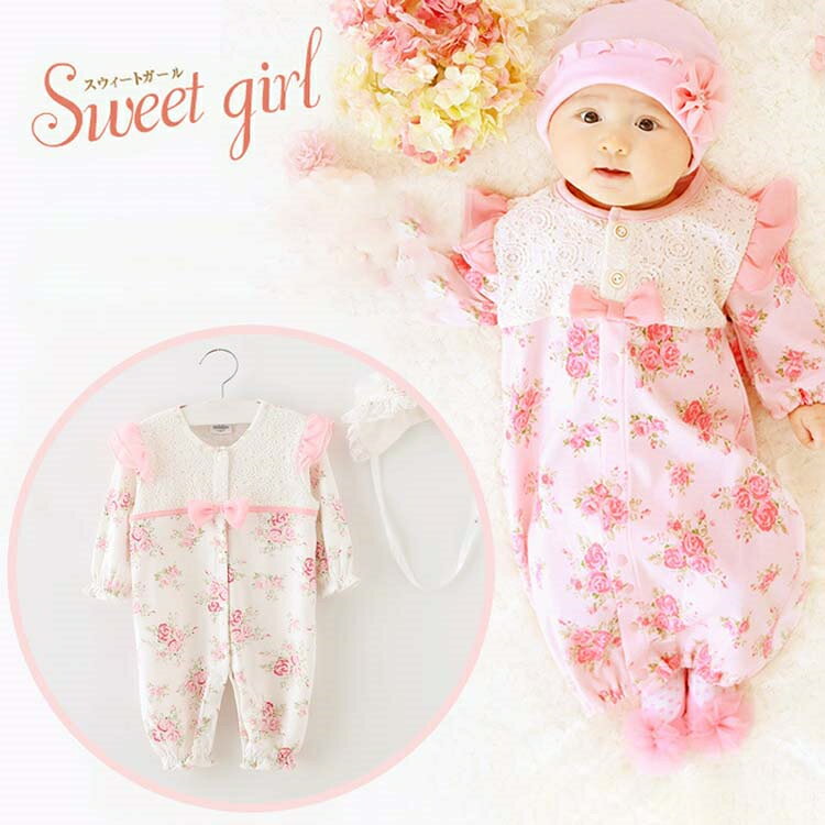 ベビー服 長袖ロンパース 前開き 丸襟 女の子 子供服 春 秋 冬 綿 カバーオール 赤ちゃん 花柄 ゴム入れ レース