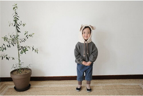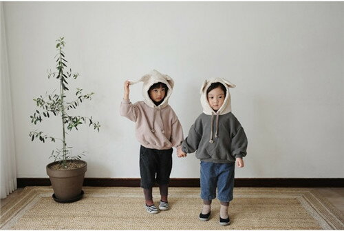 ふかふか 裏起毛 バイカラー パーカー 耳付き トレーナー スウェット くすみカラー 秋冬パーカ 男女兼用 キッズ服 ベビー服 赤ちゃん 子供服 トップス 厚手 80cm/90cm/100cm/110cm/120cm/130cm