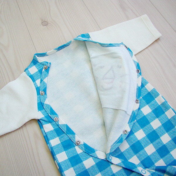 ●おむつ替えが頻繁な新生児期は筒型ドレスで、動きが活発になってくる乳児期は股割れカバーオールで、股スナップの付け替えで2ウエイに使えます。