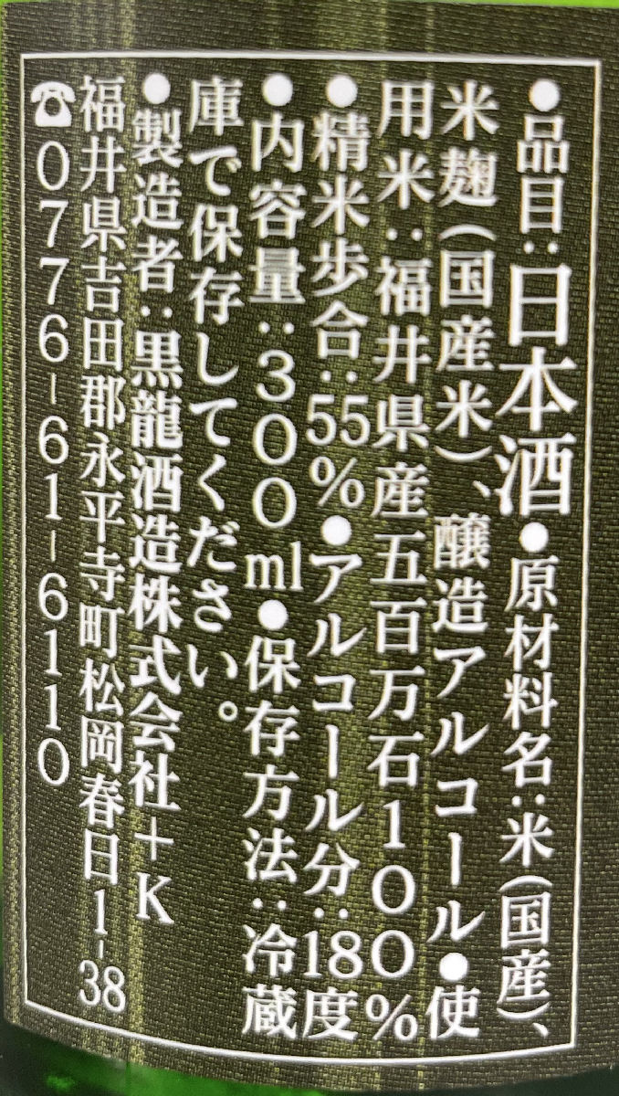 黒龍 【春しぼり】 火入れ 300ml 季節限定品 福井県(黒龍酒造)