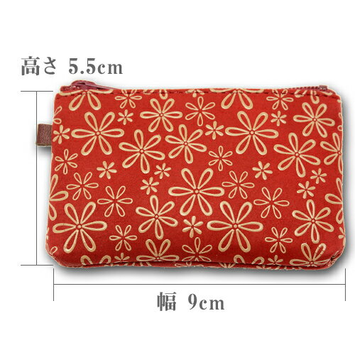 印伝 小銭入れI型 小【印傳屋 財布・小銭入れ・コインケース・革製・カード入れ】1009・赤/白 雪割草