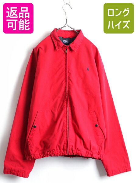 90's ■ POLO ポロ ラルフローレン チェック ライナー付き コットン スイングトップ ジャケット ( メンズ L ) ジャンパー 赤 ポニー 刺繍 | 中古 RALPH LAUREN 男性 オールド ブルゾン ワンポイント レッド チンストラップ アウター ポニー刺繍 チェックライナー 90年代
