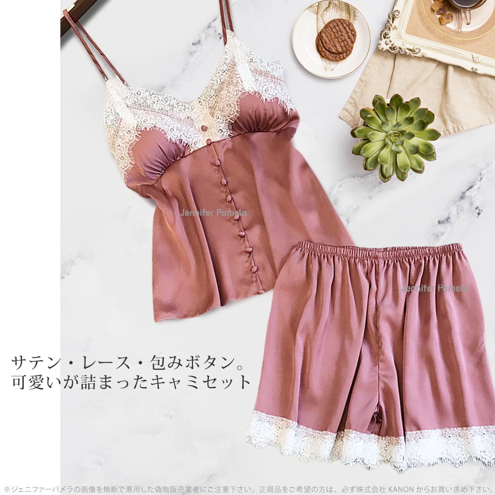ランジェリー Victoria ヴィクトリア 上下セット カップ付き ジェニファーパメラ キャミソール ペチパン レディース M L レース サテン くるみボタン ピンク ブルーグレー ネイビー ブラック セクシー パジャマ Jennifer Pamela おうち時間 □ 即納